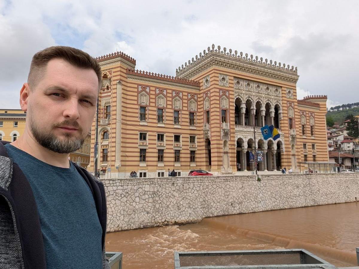 Сараевская ратуша. Сараево. Босния и Герцеговина. 25.04.2025 В момент своего открытия это было самое величественное и представительное здание в Сараево эпохи Австро-Венгрии. Однако, в 1992 году сербский обстрел привел к полному разрушению библиотеки, которая занимала часть здания. В огне погибло около 700 рукописей и уникальная коллекция боснийских периодических изданий, некоторые из которых датируются периодом возрождения боснийской культуры в середине XIX века.