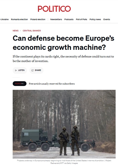 Европейская версия Politico задается интересным вопросом: может ли милитаризация экономики и ставка на ускоренный рост ВПК, за что сейчас ратует верхушка евробюрократии и стран-локомотивов ЕС, стать двигателем экономического роста Европы? Микроволновки, GPS, дроны, клейкая лента, ПК. Это лишь краткий список бытовых товаров, которые ведут свое происхождение от военных исследовательских лабораторий. Их двойное назначение на языке оборонного сектора известно как «военно-гражданское слияние», говорится в материале. Теперь, когда Европа готовится направить поток денег в свой оборонный сектор, чтобы переломить десятилетия недоинвестирования, велики надежды на то, что плачевные показатели производительности на континенте могут быть вызваны аналогичной военной изобретательностью, чтобы переломить ситуацию. Проекты, реализуемые в Европе, уже начинают конкурировать с проектами США по амбициозности: от континентальной противоракетной обороны до спутниковых группировок на низкой околоземной орбите