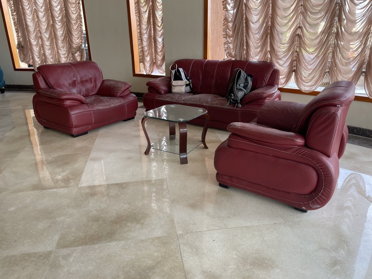 Ресепшн у отеля очень мрачный. Днем здесь почти не горел свет, гуляли сквозняки, при входе стояли дырявые и потертые диваны и кресла, другая мебель продавленная, столы покрыты пылью и липкими следами от посуды, а стеклянные элементы обстановки были в разводах.