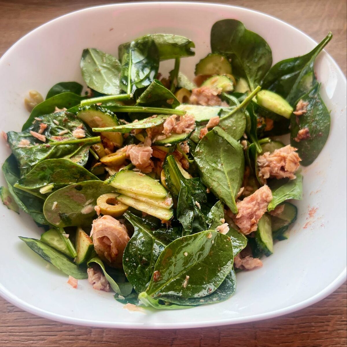 🌿 Салат с тунцом, шпинатом и паприкой — за 5 минут!🥗 Ребята - это объедение🔥🚀. Легко, свежо, полезно и оооочень вкусно 😋❤️. Хрустящий огурец, нежный тунец, пикантные оливки и дымчатая паприка создают идеальный баланс! А витаминный шпинат и лимонный сок заряжают энергией. Ингредиенты: - Молодой шпинат — 2 горсти - Свежий огурец — 1 шт. (нарезать полукольцами) - Оливки без косточек — 50 г (колечками) - Тунец в собственном соку — 1 банка (слить жидкость) - Сок лимона/лайма — 2 ст. л. 🍋 - Ароматное масло (оливковое с травами или чесноком) — 1 ст. л. - Щепотка морской соли - Паприка — 1 ч. л. (или по вкусу) 🌶️✨ (обязательно добавьте ☝️) 🍽️ Подавайте сразу— и наслаждайтесь вкусом! Тегните меня, если приготовите — будет радость!😊