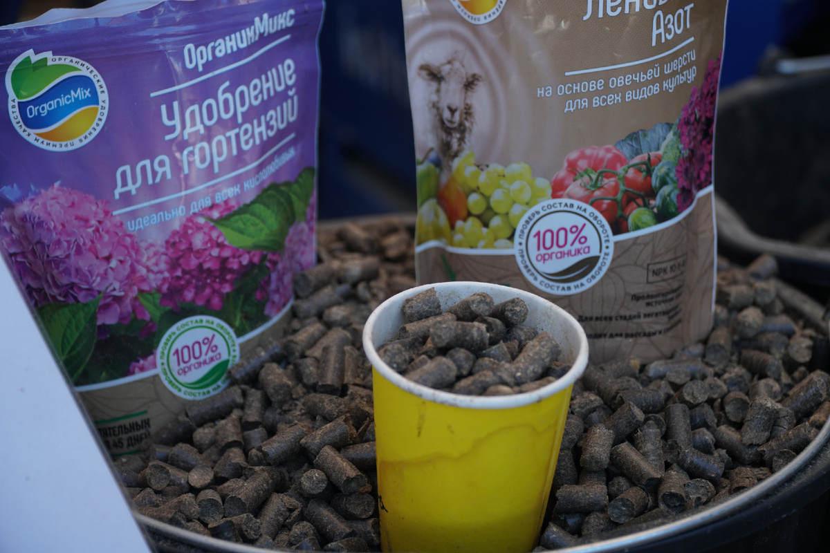 Дмитрий Мохов из Ростовской области (родом из ДНР) привез на XXV Российскую выставку племенных овец и коз удобрения, которые сделаны из овечьей шерсти. Гранулированная овечья шерсть – это экологично чистое и эффективное органическое удобрение. «Мы берём руно, измельчаем на грануляторе, перетираем в ватаобразную гранулу, а потом эту гранулу можно смешать с биогумусом, сеном и с навозом. В итоге получается гранулированное удобрение с наполнителем. Также можно просто овечью шерсть гранулировать и вносить ее в грунт. При поливе или в дождь она разбухает и держит влагу в почве»-, отметил участник выставки. Дмитрий Мохов приехал в Дагестан в первый раз. «Впечатления положительные. Люди удивляются, что из шерсти можно делать удобрения. Мы выкидываем много сырья. Не обязательно использовать хорошего качества шерсть. Можно использовать грубую шерсть и отходы», - поделился собеседник. Удобрение из шерсти идеально подходит для овощных и плодовых культур. Способствует росту корневой системы, увели