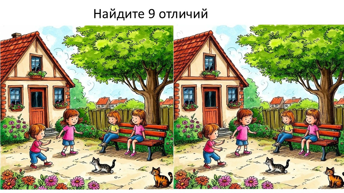 Кто-то называет это задачами на логику, но я считаю, что на умение концентрироваться – некоторые отличия очень хитрые. Перед вами две, казалось бы, одинаковые картинки — но это только на первый взгляд! Где-то здесь спрятаны 9 хитрых отличий, и ваша задача — раскрыть их все. Гениально, если вы успеете это сделать за 10 минут. Одни детали видны сразу, другие хорошо «зашифрованы». Присмотритесь к каждой мелочи, включите режим "супервнимание" и начинайте поиск! 👇✨ Задание трудное. Некоторые отличия очень серьезно скрыты. За сколько минут уложились? А теперь проверьте себя! Удалось ли вам отыскать все загадки? Задание было трудным? Что оказалось самым хитрым и ловко замаскированным?