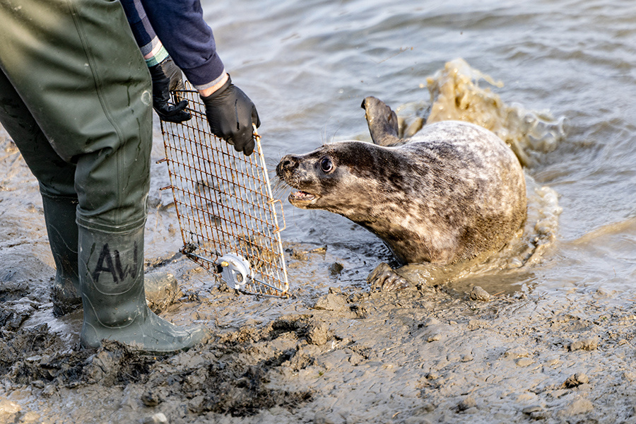 Своим недовольным кряхтением тюлень будто подгоняет тех, кто несет его к воде. А это непросто: пассажир упитан, весит не менее 40 килограммов. Достаточный запас подкожного жира очень важен, чтобы животное могло выжить в дикой природе. Ведь ему нужно плавать в холодной воде и охотиться на рыбу. Один из выпускников всем своим видом показывает: к взрослой жизни готов. Все эти животные выращены человеком. Новорожденными щенками они остались без мам. Из-за теплых зим лед в Финском заливе и Ладожском озере, где ластоногие устраивают лежбища, очень тонкий. Весной он ломается быстрее, чем тюленята и нерпята успевают окрепнуть. Если самка и детеныш оказываются на разных льдинах, они теряют друг друга. Порой щенкам удается добраться до берега - там их, на грани истощения, находят люди. В Центре спасения ластоногих, который работает на базе петербуржского Водоканала, детенышей лечат и откармливают рыбой. Через 2-3 месяца выпускают на волю. "Этот сезон для нас непростой, абсолютный рекорд за все г