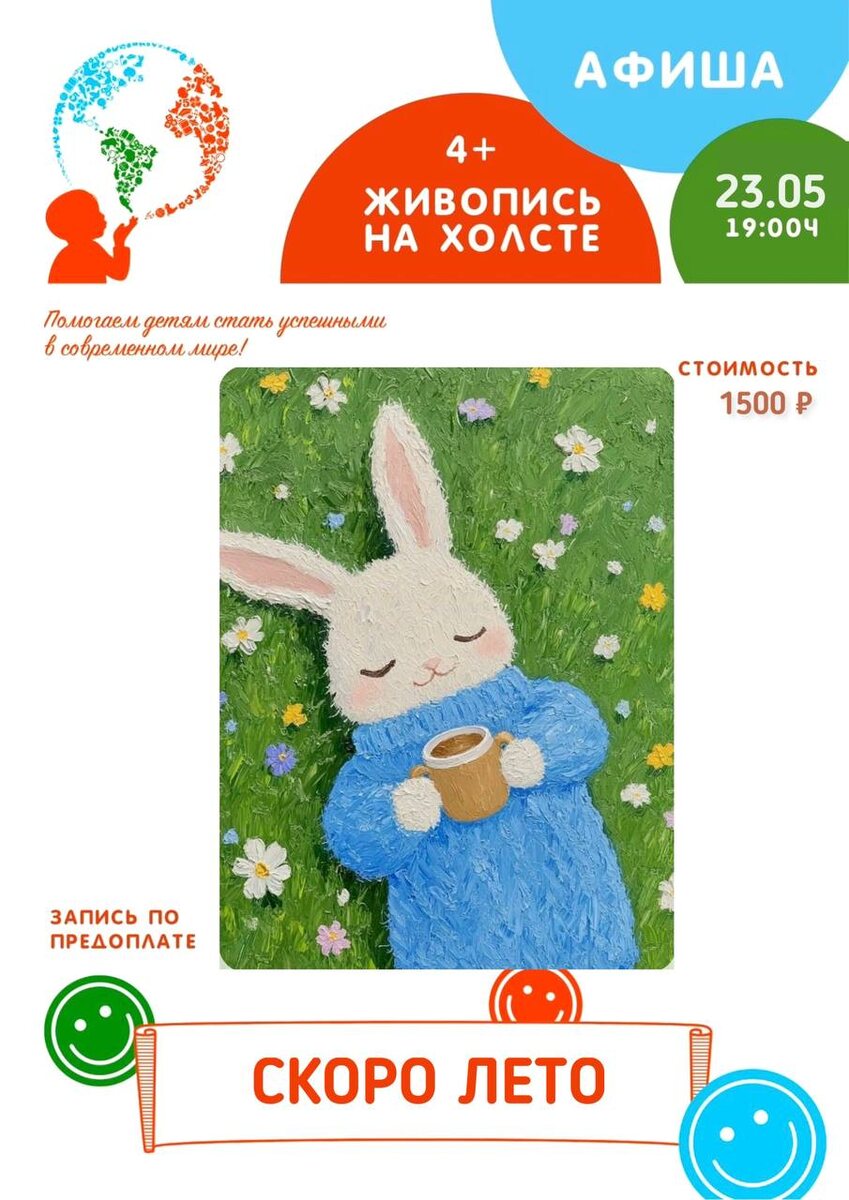 🥚🔡🔤🔤🔤🔤🥚 Афиша мастер-классов для ваших детей ! 📬вот ссылка для подруги https://dzen.ru/media/id/650f61281aa1104a41ca948d/afisha-masterklassov-dlia-vashih-detei-682afb13250b3b63939b732d Пятница : 💫Мастер-класс по живописи для детей « СКОРО ЛЕТО» ❤️16 мая ❤️19:00 Дети 4+ Стоимость:1500₽ Суббота : 🍰Субботний КУЛИНАРНЫЙ мастер-класс «ТВОРОЖНЫЕ РОГРАЛИКИ» ❤️24 мая ❤️16:00 Дети 4+ Стоимость: 900₽ Пятница : 💫Мастер-класс по живописи для детей « ПИОНЫ И ШПИОН» ❤️30 мая ❤️19:00 Дети 4+ Стоимость:1500₽ Бронь и оплата по телефону: ☎️ +7-926-716-63-36 📍Кировоградская 36