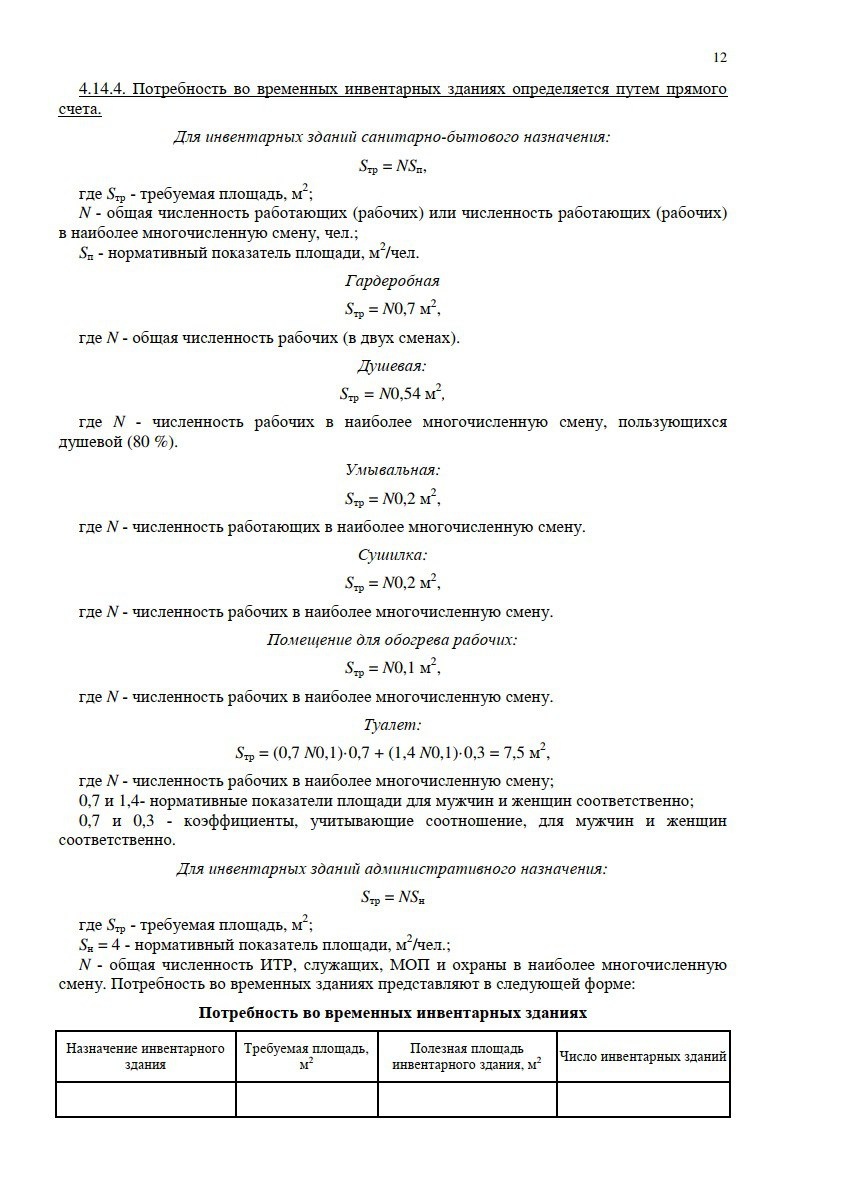 1. Формула расчет потребности строительства во временных инвентарных зданиях приведена в п. 4.14.4 МДС 12-46.2008.