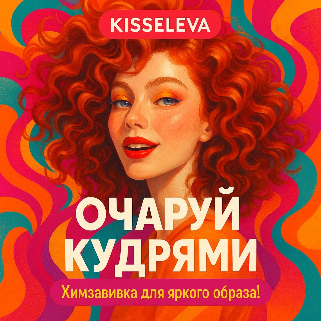 🅰️🌀🌀🌀 Коллекция рекламных баннеров для салона красоты Kisseleva от Art Group для рекламной кампании Я.Бизнес. Коллекция баннеров для салона красоты Kisseleva, созданная Art Group для рекламной кампании Я.Бизнес, выполнена в ярком, современном стиле с акцентом на выразительные образы и сочные цвета. Каждый баннер транслирует индивидуальность и свежий взгляд на услуги салона: это химзавивка для создания привлекательных кудрей, стильное окрашивание с использованием ярких оттенков, современные мужские стрижки для уверенных в себе клиентов, а также креативные решения для выхода из чёрного цвета волос. На всех макетах используются позитивные слоганы, подчеркивающие экспертизу мастеров и уникальные преимущества салона. Графика баннеров отличается насыщенной цветовой палитрой, плавными линиями и динамичными композициями, которые привлекают внимание и подчёркивают актуальность предложений. Иллюстрации сочетаются с лаконичной типографикой, что делает посылы запоминающимися и легко читаемым