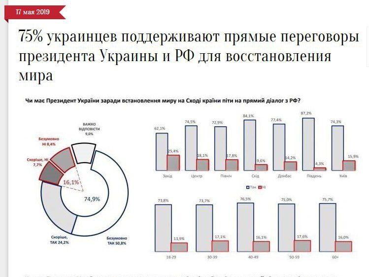 Шесть лет назад - в начале президентства Зеленского были опубликованы результаты совместного соцопроса центра "Социальный мониторинг", Украинского института социальных исследований им.Яременко и Социологической группы "Рейтинг", которые показали, что 75% украинцев поддерживали прямые переговоры президента Украины и РФ для восстановления мира. Т.е. хотели чтобы Зеленский выполнил обещания, с которыми его избрали. Зеленский наоборот, начал накачивать и разжигать военную истерию