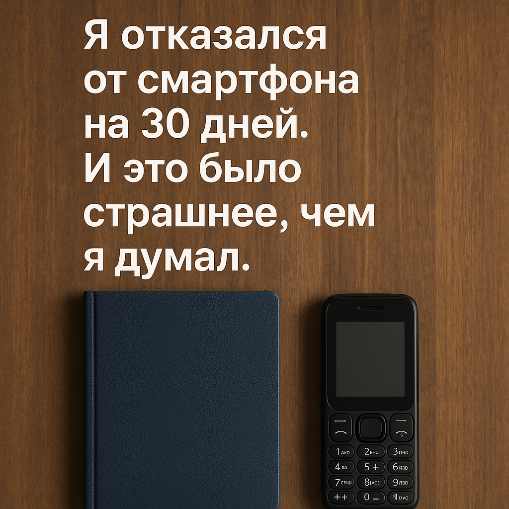 Я решил: 30 дней без смартфона. Только кнопочный телефон и бумажный блокнот. Ни соцсетей. Ни мессенджеров. Ни YouTube. Ни TikTok. Ни навигатора. Ни Spotify. Только реальность. Настоящая.