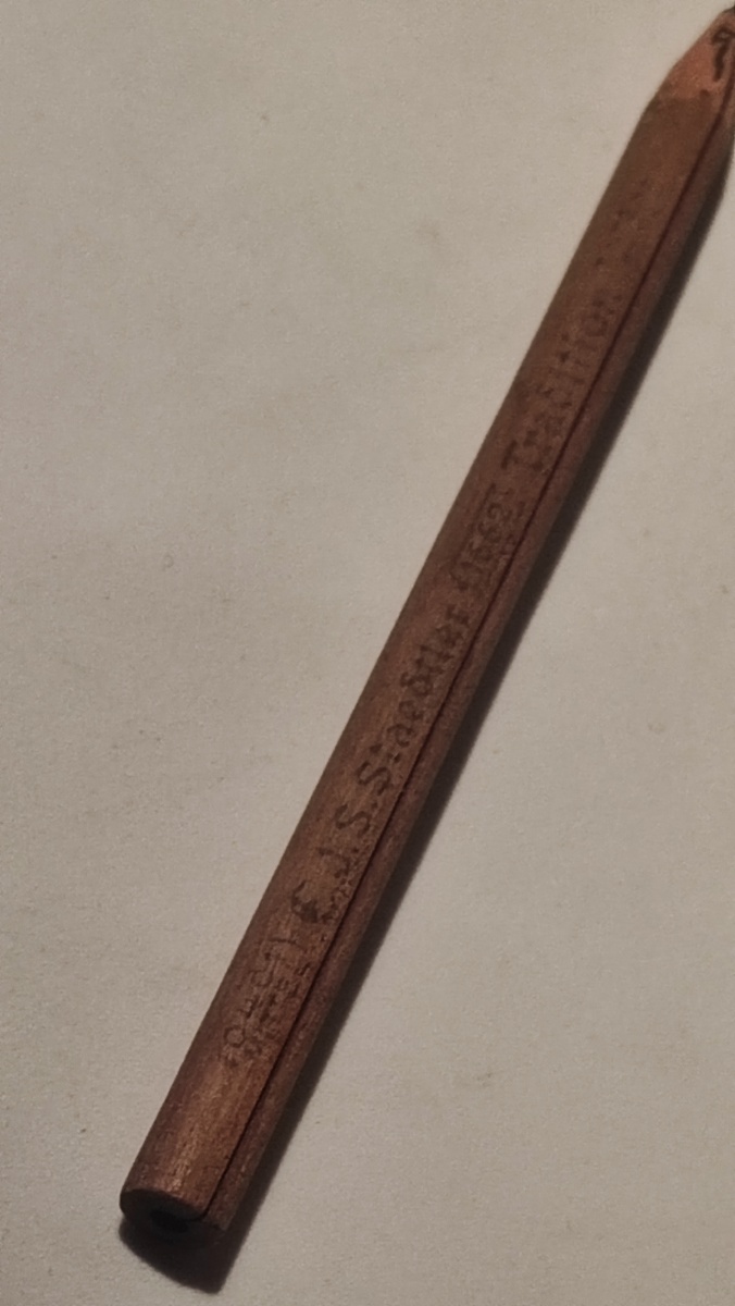 Так-то я не кцентирую внимание на карандашах, которые "подарок из Африки", но почему не купить? Если не дорого? Вот такие есть у меня: Германия. Юбилейный? 1662 год - это начало выпуска немецких карандашей... Тоже Германия. С номером патента. И, естественно, кохиноровчкие: когда-то Чехословакия пишут в строчку, когда-то в две строчки... Не обычно, на этом карандашике твердость указана трижды... :0)) Этот я принёс с работы... 46 - не обозначение ли это года? " После войны в институте создавалась аппаратура для исследования космоса, разрабатывались двигатели для ракет[2], таких как Р-7, которая вывела на орбиту первый искусственный спутник" Ну, может кто-то из Чехословакии привез, где изучал Фау-2? :0) (Поликолор) (Возможно это чертёжный карандаш...) А может - канцелярский. А может, для раскрвшивания .... Графики рисовать? ПС Карандаши из Вьетнами и Китая не показываю. Не интересные... :0)