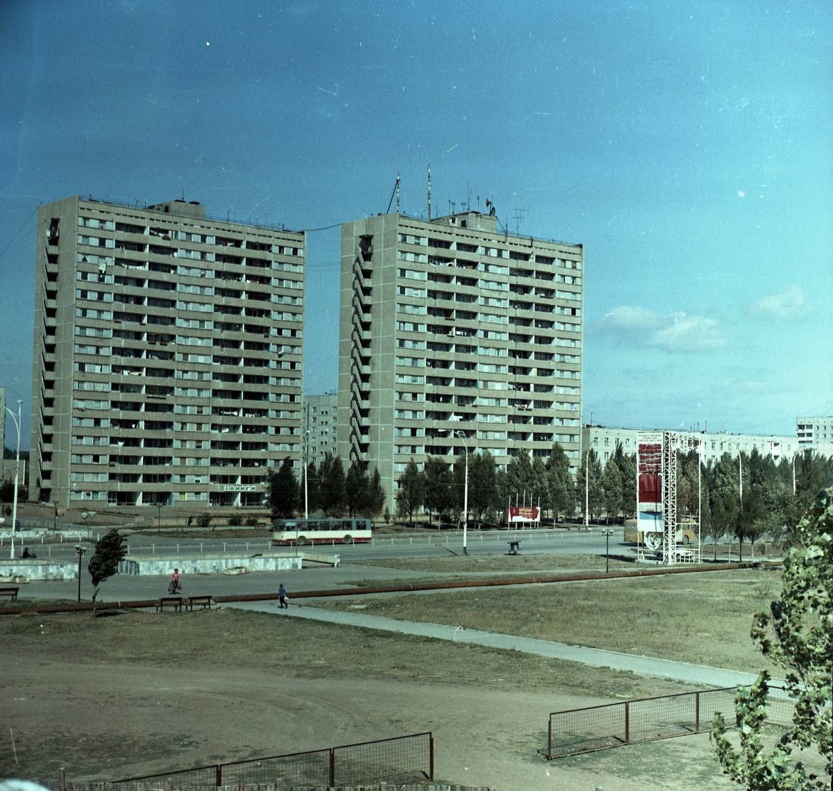 По традиции начинаем утро с архивного фото. Сегодня мы смотрим фото сделанную в 1988 году. На ней дома №3 и №5 по проспекту Строителей.