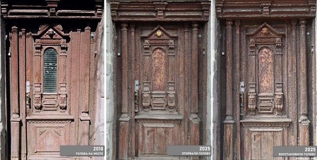 Ростовская область, 19 мая 2025. DON24.RU. В Ростове на двери дома на ул. Серафимовича, 59, вновь появилась резная голова льва. Как сообщает общественное движение «МойФасад», нынешний элемент – реплика, созданная неизвестным энтузиастом. Оригинальный декор был сорван в январе этого года. «Чудным образом добротная реплика головы вернулась на место. Кто это сделал – ни нам, ни жильцам дома неизвестно. У двери много поклонников в городе, и, возможно, некий тайный доброжелатель по сохранившимся фотографиям воссоздал резной элемент близко к оригиналу», – говорится в сообщении. Фото: «МойФасад» Здание построено в XIX веке. Оно принадлежало художнику Ивану Мишустину, который занимался изготовлением вывесок. С 2020 года дом признан объектом культурного наследия. Ранее сообщалось, что на противоаварийные работы для двух ОКН в Ростове выделили 11,8 млн рублей.