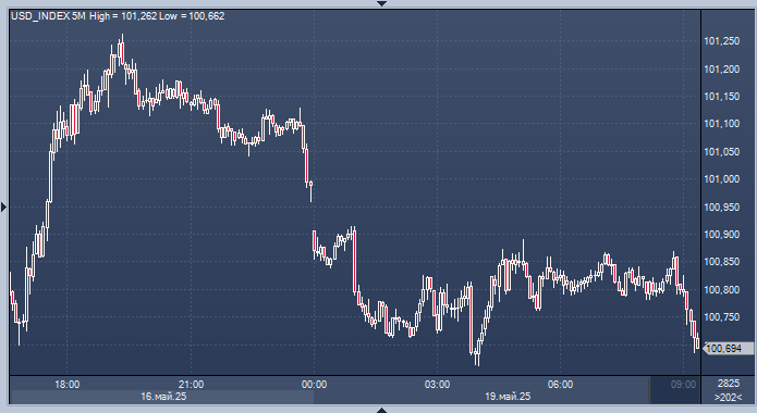Доллар упал до недельного минимума против иены, так как трейдеры оценивают перспективы США. Торговая напряженность с США сохраняется, FT сообщает об оттепели в отношениях с ЕС. Бессент предупреждает о введении 2 апреля тарифов для стран, не ведущих переговоры «в духе доброй воли» График индекса доллара интервалами в 5 минут В понедельник доллар США достиг недельного минимума по отношению к безопасной иене, поскольку рынки отреагировали на неожиданное снижение кредитного рейтинга правительства США и опасения по поводу торговых споров. Во вторник австралийский доллар вырос после трёхдневного падения, чему способствовало ожидание снижения процентной ставки Резервного банка Австралии на четверть пункта. В пятницу агентство Moody's понизило высший кредитный рейтинг США на одну ступень, став последним из крупных рейтинговых агентств, принявших такое решение. Причиной послужили опасения по поводу растущего государственного долга в размере 36 триллионов долларов. На фоне этих новостей доллар с