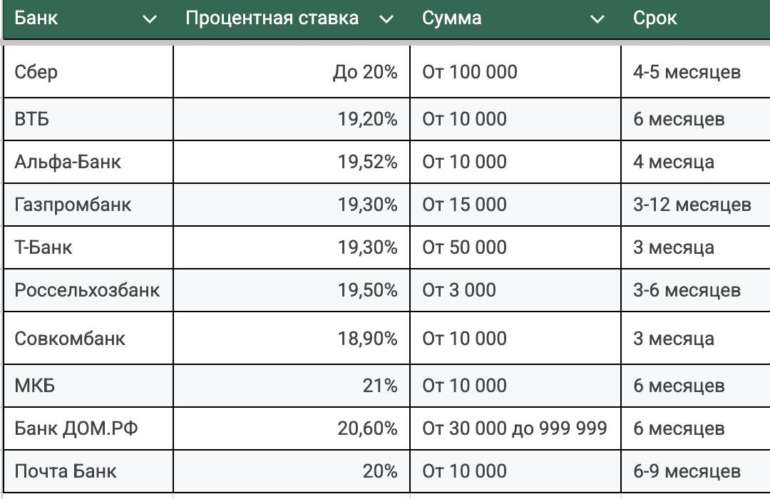 Где хранить деньги: обзор вкладов и накопительных счетов за май Раз в месяц я мониторю предложения банков, изучаю условия по вкладам и накопительным счетам. Делюсь с вами подборкой вкладов и накопительных счетов за май у топ-10 банков по объему вкладов физических лиц. В таблицах собраны предложения без или с минимально дополнительными условиями. Никаких «Трать 100 тыся в месяц» или «Храни миллион в нашем банке». Посмотреть все варианты можете на скриншотах или в таблице, там расписано более подробно.
