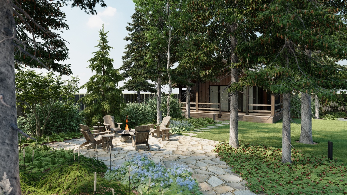 Всем привет! С вами компания ecogarden. Сегодня мы расскажем вам про один из наших ландшафтный проектов, который мы выполнили для наших заказчиков. Объект находится в КП Лесницыно. Площадь участка составляет 13 соток. Дорожка, которую вы сейчас видите на экране, выполнена из пошаговых плит из натурального камня. Очень органично вписывается в общую стилистику лесного участка, его естественный природный облик. У наших заказчиков двое детей. Для них на участке мы разместили детскую и спортивную площадки. Даже конструкция площадки поддерживает природный стиль, и смотрится это очень круто, согласны? Здесь мы использовали резиновое покрытие, чтобы снизить риск травм во время игры. Теперь перемещаемся на террасу. Сразу представляются уютные завтраки на ней, не так ли? Ниже зона костровища. Идеальна для теплых вечеров в компании близких и друзей. Расположена она рядом с баней, которую заказчики пока только планируют построить на участке. А вот потрясающе уютная зона отдыха с гамаками. Сейчас