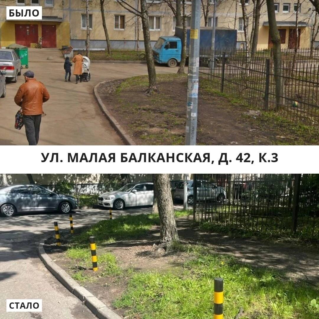 Ранее во дворе дома 42к3 по Малой Балканской улице водители частенько парковали свои автомобили с заездом на газон на радиусе поворота. Это портило зеленые насаждения и препятствовало вывозу мусора и проезду машин экстренной помощи. Этот адрес всегда входил в постоянный маршрут следования комплекса автоматической фиксации ГАТИ. Недавно муниципальные власти отчитались об установке столбиков, которые теперь препятствуют нарушению правил парковки.