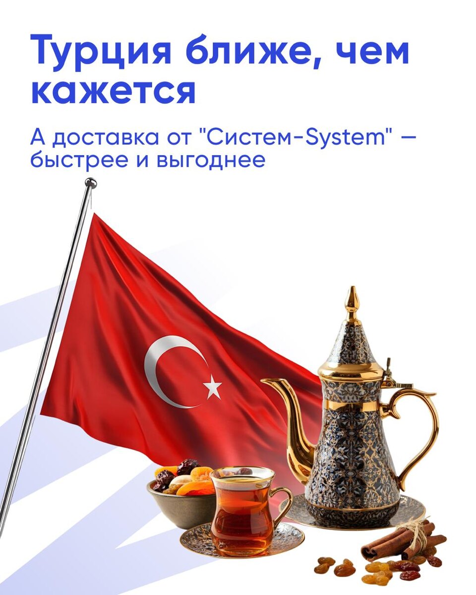 🇹🇷 Почему доставка из Турции становится всё более востребованной? Потому что это быстро, гибко и выгодно. Турция — один из главных внешнеторговых партнеров России, и сегодня логистика между странами настроена как никогда эффективно. 🔹 Турция рядом — стабильное направление даже в сезон высокой загрузки. 🔹 Широкий ассортимент — от мебели и текстиля до бытовой техники. 🔹 Конкурентные цены — даже с учётом доставки стоимость ниже, чем у российских поставщиков. 🔹 Надежные маршруты — авто, контейнеры, мультимодальные схемы — всё отлажено. 🌎 Как и турецкий чай — доставка из Турции должна быть точной, своевременной и без потери качества. “Систем-System” обеспечивает полный контроль на всём пути — от отправки до выгрузки. За подробностями обращайтесь к специалистам команды “Систем-System” в чат-бот в Telegram