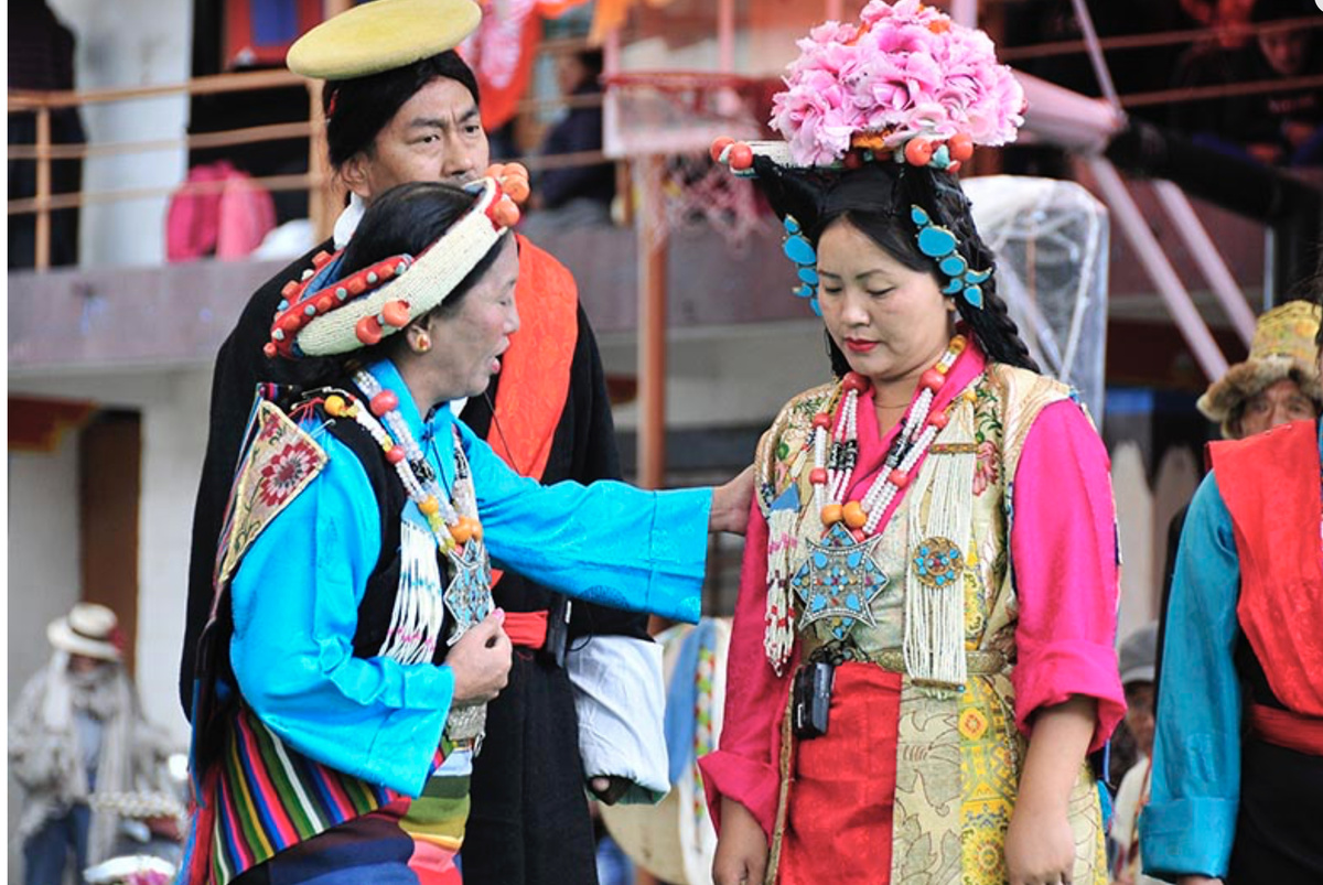 Когда Нангса со своей семьей прибыла в монастырь, где должен был состояться праздник, они прежде всего сделали подношение, попросили о даровании посвящения и совершили поклоны, а также ритуальный обход вокруг монастыря. Затем они отправились туда, где толпились люди, наблюдавшие за танцами.
