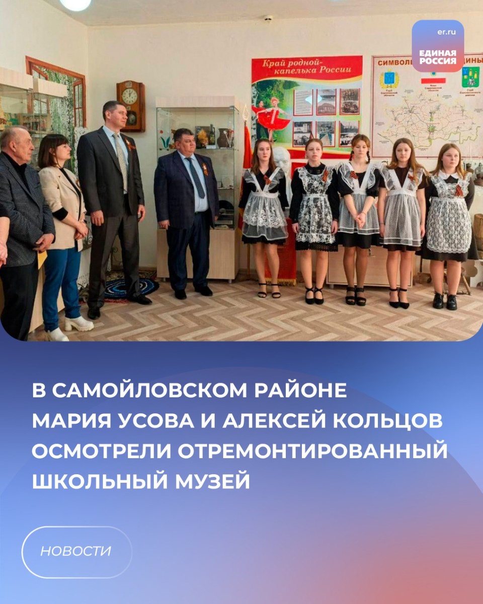 🏫 В Самойловском районе Мария Усова и Алексей Кольцов осмотрели отремонтированный школьный музей