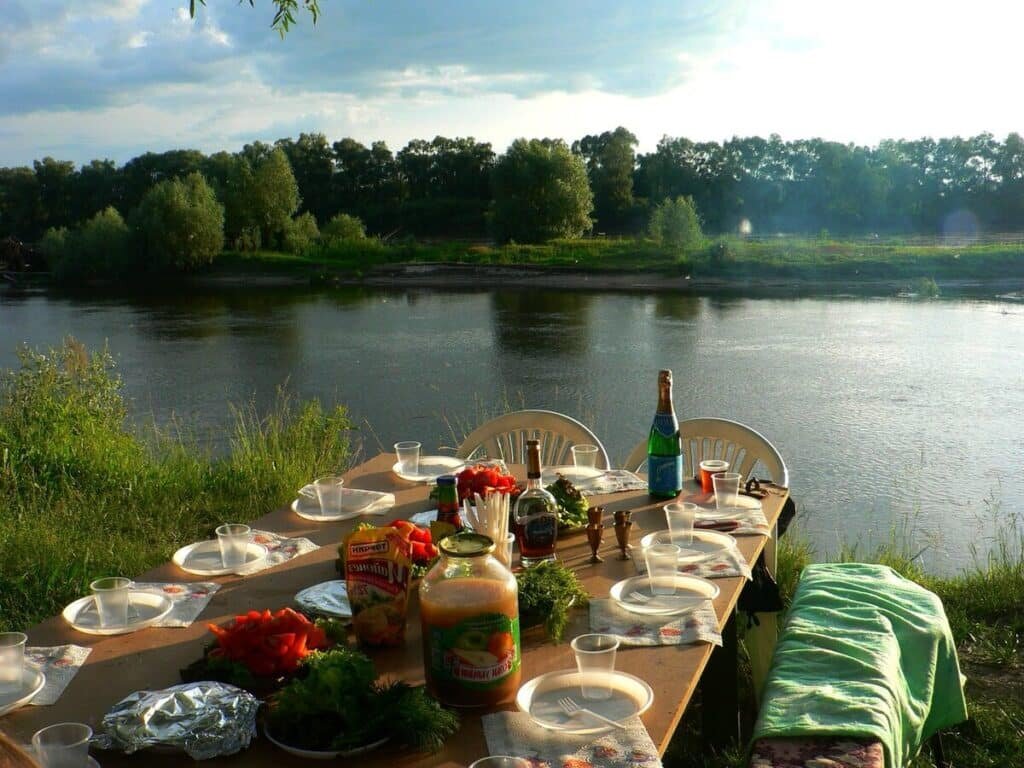 Выйдя из лабиринта подземного хода, четвёрка впервые попала на Поляну, уже накрытую по праздничному и обильно. Столы стояли под навесами и не только. Небольшие "островки вкуса" были расставлены и у воды, и у небольшой пещерки. В общем, с голоду умереть здесь было невозможно в принципе!