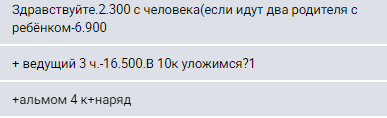 Утром проводила мужа в больницу. Он на своей машине поехал, там есть стоянка. Я занялась домашними делами, периодически заглядывая в родительский чат. Родительские баталии продолжаются. Я сегодня узнала расценки на услуги банкетного зала с приготовлением еды и ресторанным обслуживанием. Всего 2300 с человека. Красивейший зал с готовой едой! Находится в центре поселка. Никуда даже выезжать не надо. И что же я читаю? У меня логичный вопрос: Читаю ответы: и еще Серьезно? А давайте вообще всех родственников позовем и устроим гулянку для взрослых. Зачем детей спрашивать? Они деньги пока не зарабатывают. Зато 16500 родителям на тамаду не жалко, им же должно быть весело. Не знаю, к чему всё приведет. Но я, честно, уже надеюсь, что никакого выпускного для родителей не будет и после торжественной части вручения аттестатов дети отправятся туда, куда им хочется. Зря только время на переговоры с хозяином банкетного зала потратила. И его, и своё. Позвонила мужу ближе к обеду, и он меня ошарашил пло