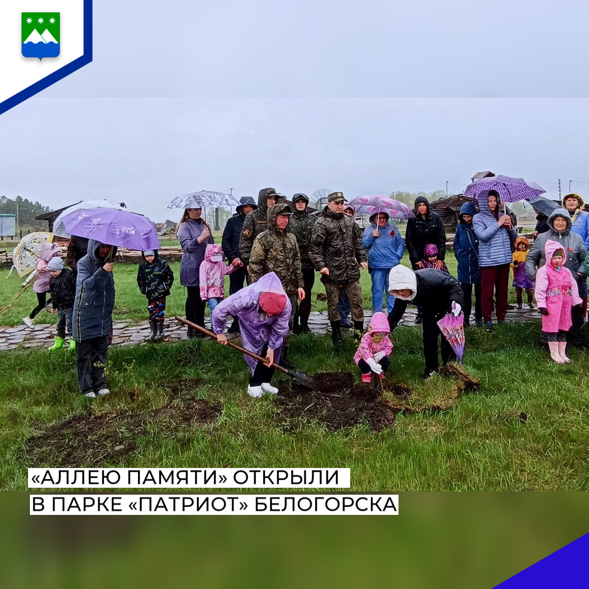 17 мая в парке «Патриот» Белогорска открылась «Аллея памяти». Она посвящена участникам Великой Отечественной войны. Инициатором мероприятия выступил городской Совет ветеранов. Поддержка мероприятию оказана главой города Станиславом Мелюковым, военнослужащими 35-й Армии, администрацией и родителями детского сада №1. — Несмотря на дождливую погоду мероприятие состоялось, — отметила председатель Совета ветеранов Татьяна Бычкова. — Администрация предоставила автобус для ветеранов. Военнослужащие подготовили лунки и молодые саженцы березы. Совместно с детьми из детского сада №1 высадили 16 деревьев. В их числе: 7 берез для Героев Советского Союза: Василию Алексеевичу Хитрину, Александру Игнатьевичу Уласовец, Ивану Нестеровичу Коваль, Петру Евстафьевичу Горе, Степану Харитоновичу Сикорскому, Касиму Шабановичу Ахмирову и Валентину Викторовичу Пилипасу; 9 берез высажены для Кавелеров трех Орденов Мужества Петру Владимировичу Скорикову и Василию Адамовичу Хижняку, а также участникам Великой От
