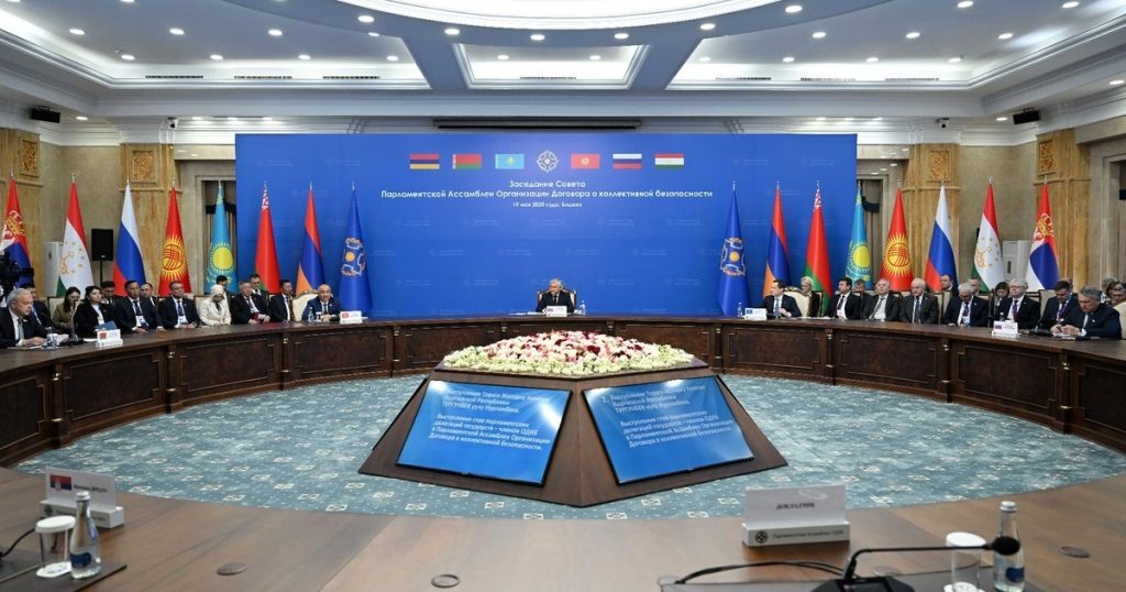 Бишкек, 19.05.25. Жогорку Кенештин спикери Нурланбек Тургунбек уулу ЖККУнун парламенттик ассамблеясында терроризмге каршы күрөшүү, санариптик коопсуздук жана трансчек аралык кылмыштар боюнча мыйзамдарды иштеп чыгууну сунуштады. Кыргызстандын төрагалыгы учурунда беш негизги багытка көңүл бурулат: тышкы саясий координацияны бекемдөө, аскердик кызматташтыкты өнүктүрүү, заманбап чакырыктарга жана коркунучтарга каршы туруу, парламенттик өлчөмдөр жана аналитикалык потенциалды өнүктүрүү.