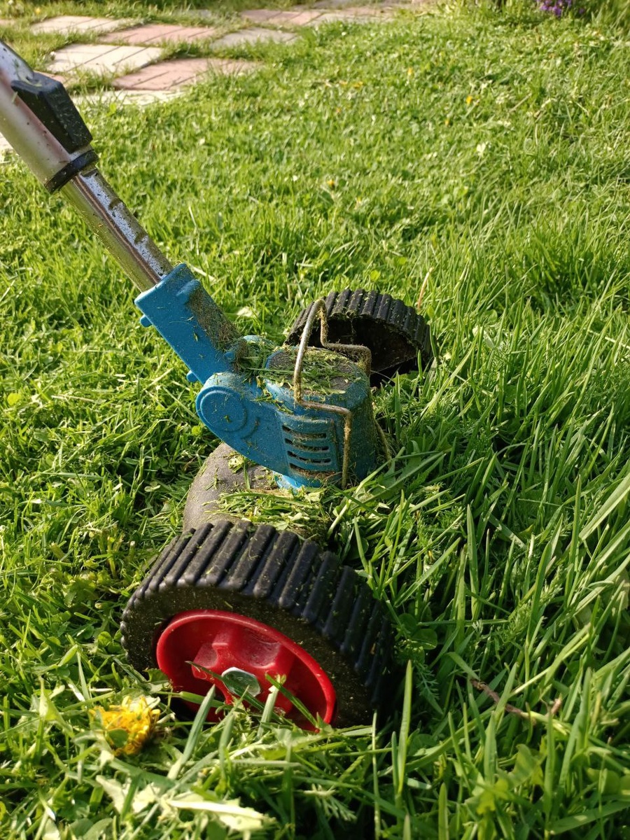 Игрушка, чудо из Поднебесной, всё же рабочий инструмент. Аккумуляторный триммер справляется и с жёсткой травой тоже. Вдоль тропинок пройтись, где-то по быстрому скосить небольшой участок — помогает.
