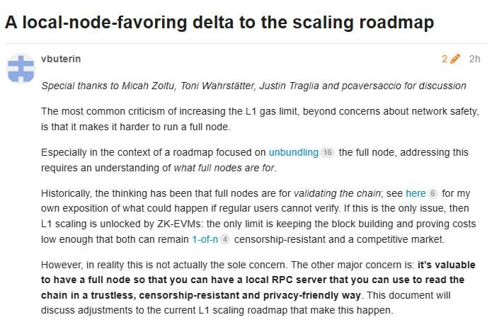 🕔Виталик Бутерин обнародовал трехэтапную стратегию для масштабирования Ethereum без ущерба для децентрализации