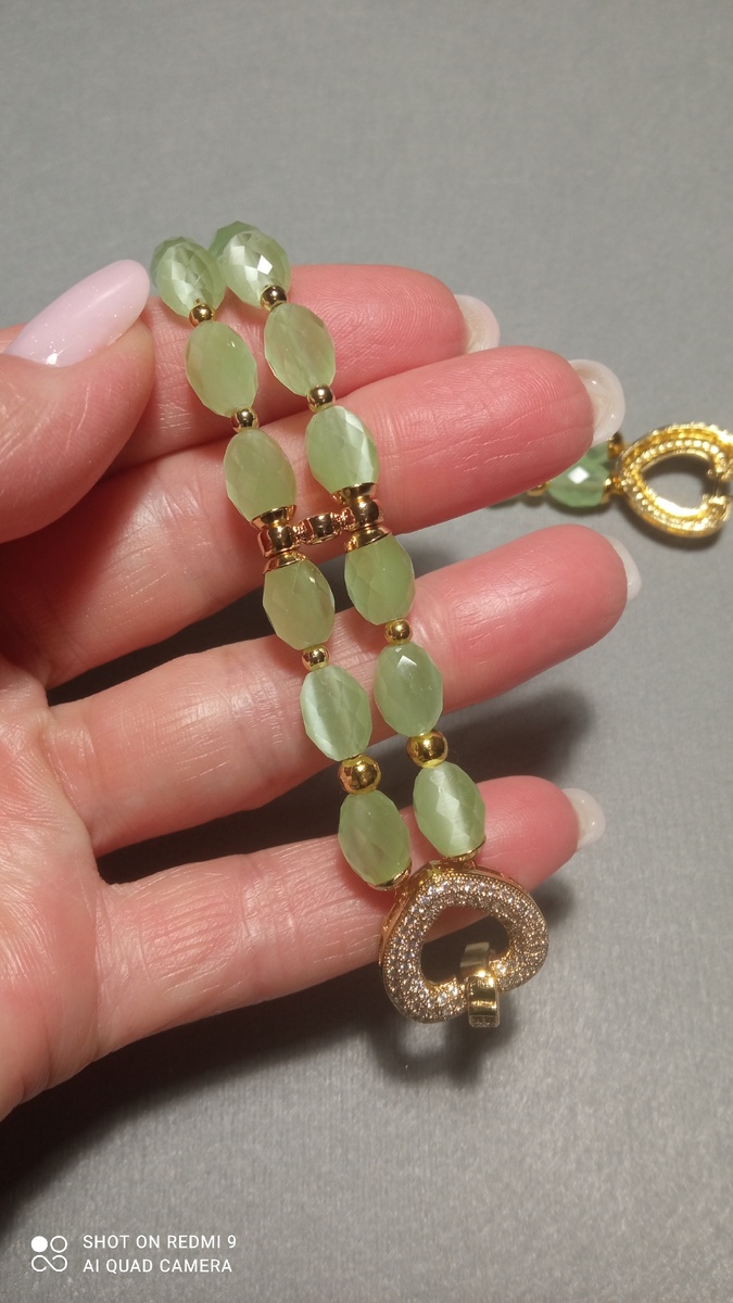 Чокер из бусин кошачьего глаза (улексита) и браслет. Длина чокера 40 см плюс цепочка удлинитель.