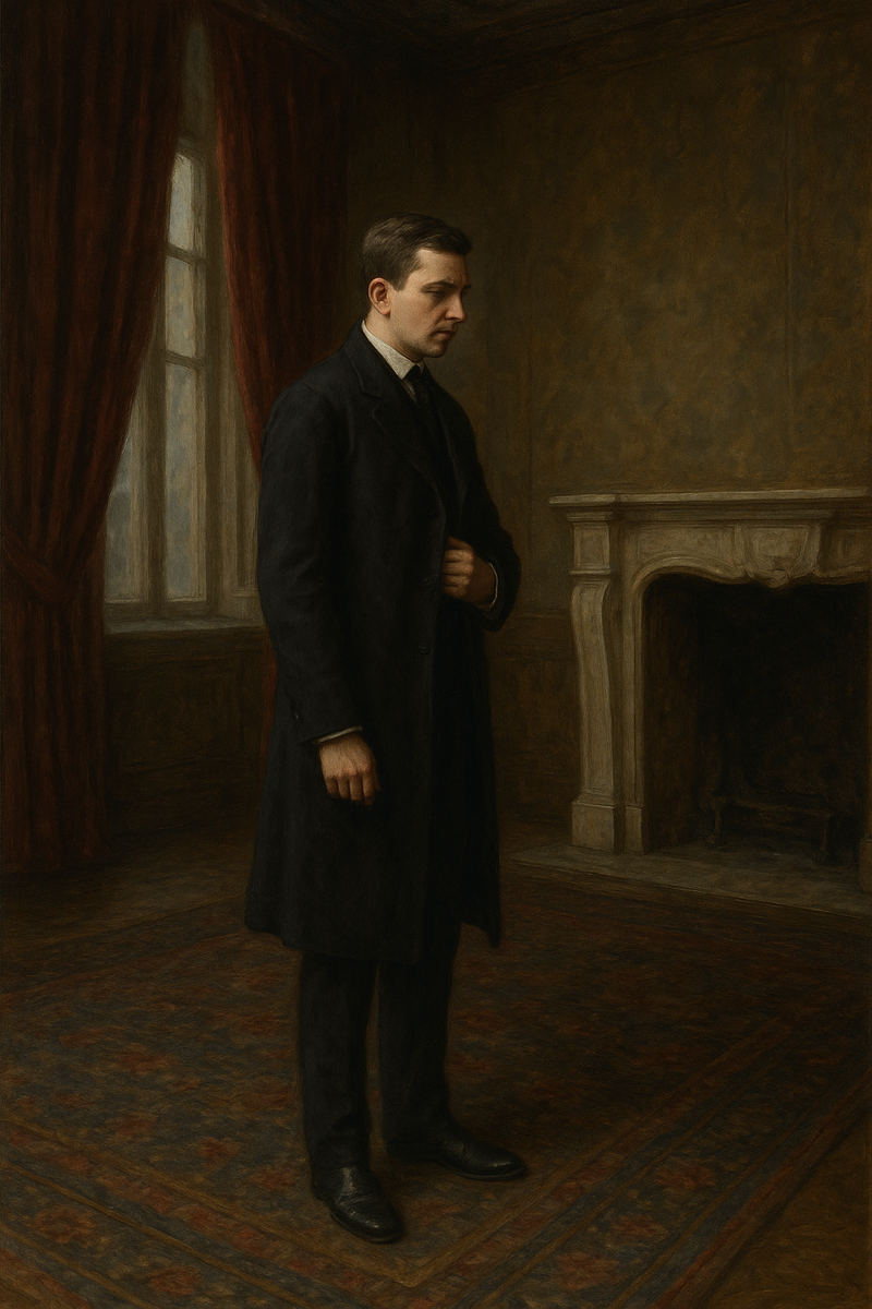 Комната была пуста. Тяжёлые бордовые шторы закрывали окна, но не могли скрыть слякотный свет венского утра. По коврам, когда-то мягким, теперь жестким от старости и пыли, не спеша шагал человек в чёрном сюртуке. Он остановился у камина. Пустой. Даже угля не осталось — дрова вывозили в казармы ещё на прошлой неделе.