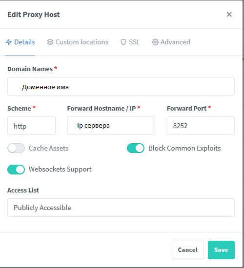 Все действия выполнялись в Ubuntu 24.04.2. Для установки потребуется docker-compose. Как его устанавливать, полно статей в Интернете, поэтому я не буду описывать этот процесс. Создадим директорию для хранения наших контейнеров, например: mkdir /home/prtn/Docker Далее создадим директории для наших контейнеров: cd /home/prtn/Docker mkdir ./FreeScout mkdir ./NginxProxyManager Создадим файл yml для nginx proxy manager: cd ./NginxProxyManager nano docker-compose.yml Вставим в файл следующее содержимое: services: app: image: 'jc21/nginx-proxy-manager:latest' restart: unless-stopped ports: - '80:80' - '81:81' - '443:443' volumes: - ./data:/data - ./letsencrypt:/etc/letsencrypt Запускаем контейнер командой: docker compose up -d Далее создаём и запускаем контейнер Freescout: cd /home/prtn/Docker/FreeScout nano docker-compose.yml Приводим его к такому виду и не забудьте изменить пароли и имена: services: freescout-app: image: tiredofit/freescout container_name: freescout-app ports: - 8252:80 li
