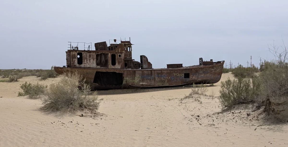 Я прилетела в Нукус в 8 утра, никаких планов и предварительных заказов экскурсий у меня не было. Взяла такси из аэропорта до гостиницы, и шофер предложил мне сразу поехать в Муйнак, смотреть на кладбище кораблей на дне Аральского моря. Дорога дальняя, 200 км, из них 100 - как стиральная доска, туда-обратно - заняло весь день, обошлось в 50 долларов.