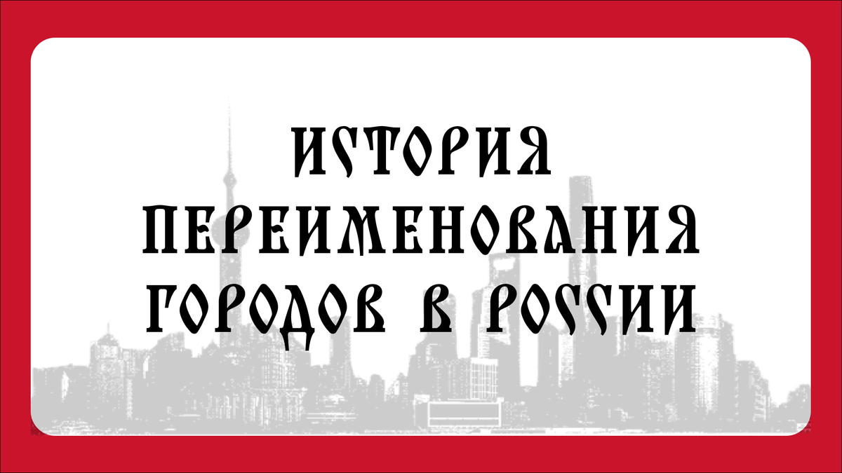 Переименование городов в России — это отражение политических, идеологических и культурных изменений, происходивших в стране на протяжении веков. Каждое новое имя городов символизировало определённую эпоху и её ценности. До революции многие российские города носили названия с иностранным звучанием, что отражало стремление к европеизации. Однако с началом Первой мировой войны началась волна переименований в более патриотичном духе. А также эти переименования символизировали смену политического курса и демонстрировали нарочитый отказ от всего имперского. Так, Санкт-Петербург в 1914 году стал Петроградом, чтобы избавиться от немецкого звучания. После Октябрьской революции 1917 года началась масштабная кампания по переименованию городов в соответствии с новой идеологией. Города получали имена революционеров и партийных деятелей: Однако, в 1961 году, во время оттепели и в рамках десталинизации, многие города вернули свои исторические названия или получили новые. После распада СССР в 1991 го