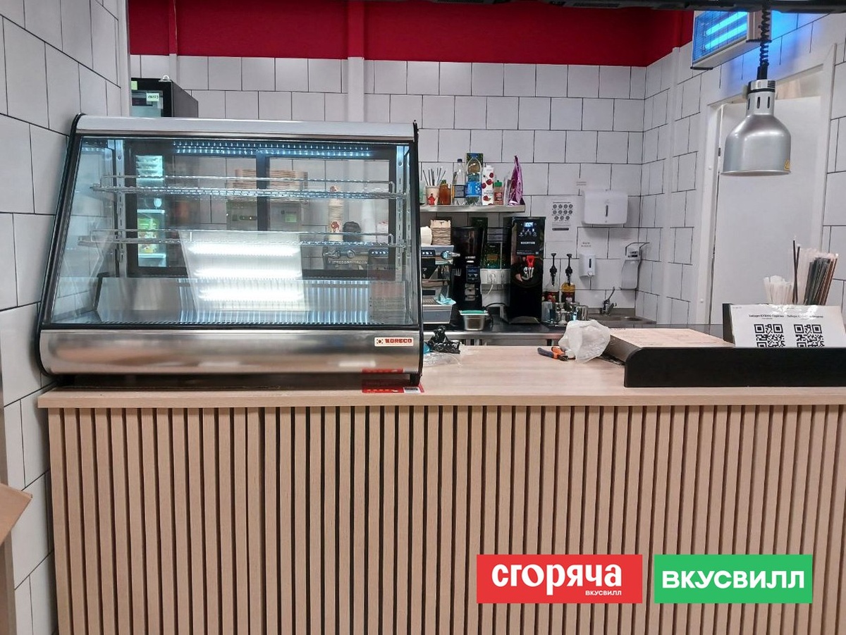 Холодильная витрина KORECO RTW 160 L2 и кипятильник KOCATEQ EB BLACK установлены на фудкорнере «Сгоряча» от «ВкусВилл» в Рыбинске