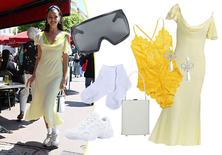 Папарацци засняли Ирину Шейк на 78-м Каннском кинофестивале во время прогулки по городу. Супермодель выбрала яркий и смелый образ, который мгновенно стал предметом обсуждения в модных кругах и социальных сетях. На Ирине — лимонное платье-комбинация с драпировкой и спущенными рукавами. Модель завершила образ массивными очками, кроссовками, серьгами с камнями и белой сумкой. В 2025 году Каннский кинофестиваль ужесточил правила дресс-кода для красной дорожки: под запрет попали откровенные наряды с прозрачными вставками, а также пышные платья со шлейфами, создающие неудобства при передвижении и рассадке гостей. Однако образ Ирины Шейк не нарушает новые правила, поскольку строгий дресс-код распространяется только на официальные мероприятия и красную дорожку. Прогулки по городу и неформальные выходы не подпадают под эти ограничения. Поэтому модель смогла выразить свою индивидуальность и модное чутье, не нарушая установленных норм. Аутфит Ирины — смелое сочетание гламура и уличного стиля. Лим