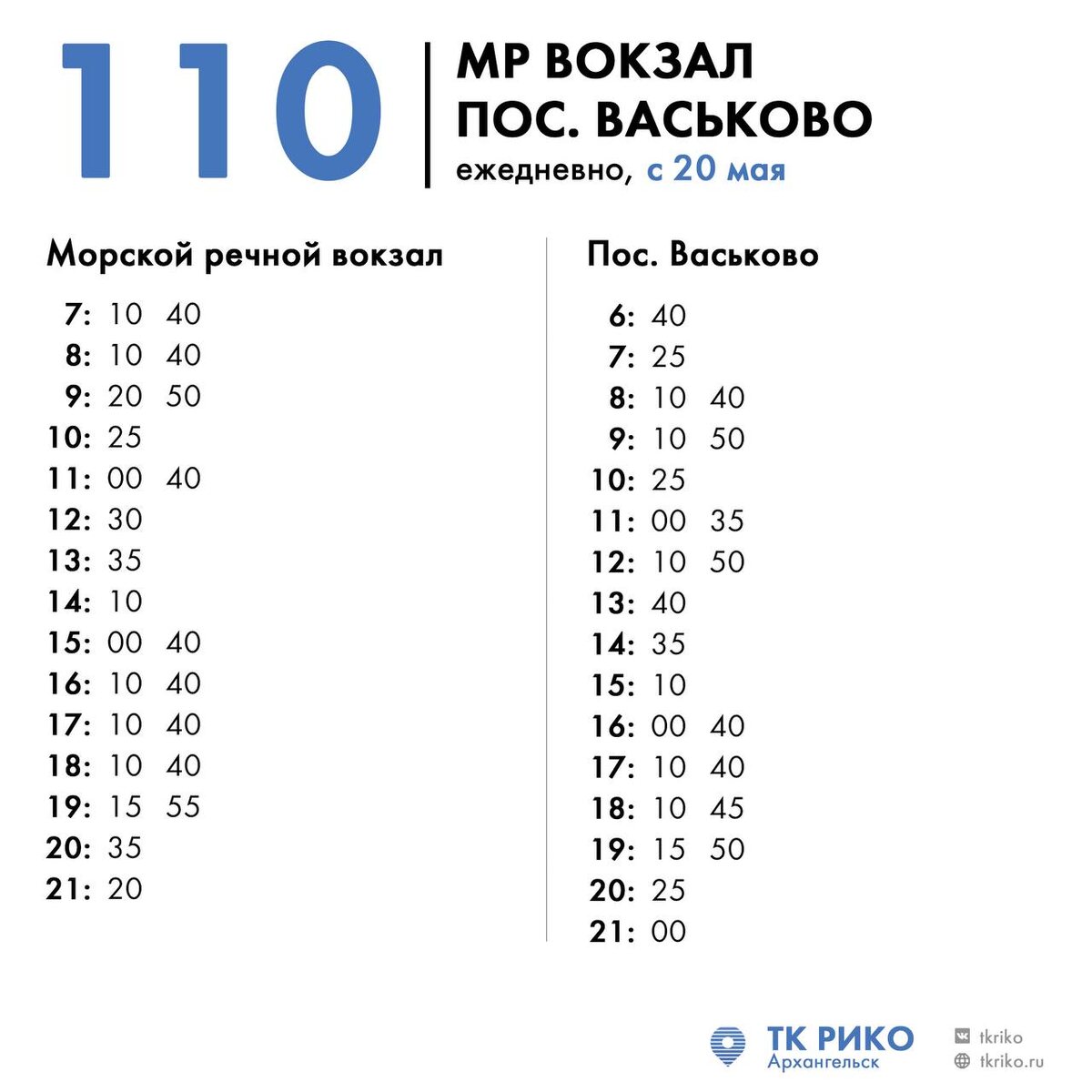 🚌С 20 мая автобусы №110 маршрута поедут по новому расписанию. Изменения обусловлены увеличением количества рейсов на маршруте в летний сезон. Расписание будет действовать с 20 мая по 15 сентября. ⠀