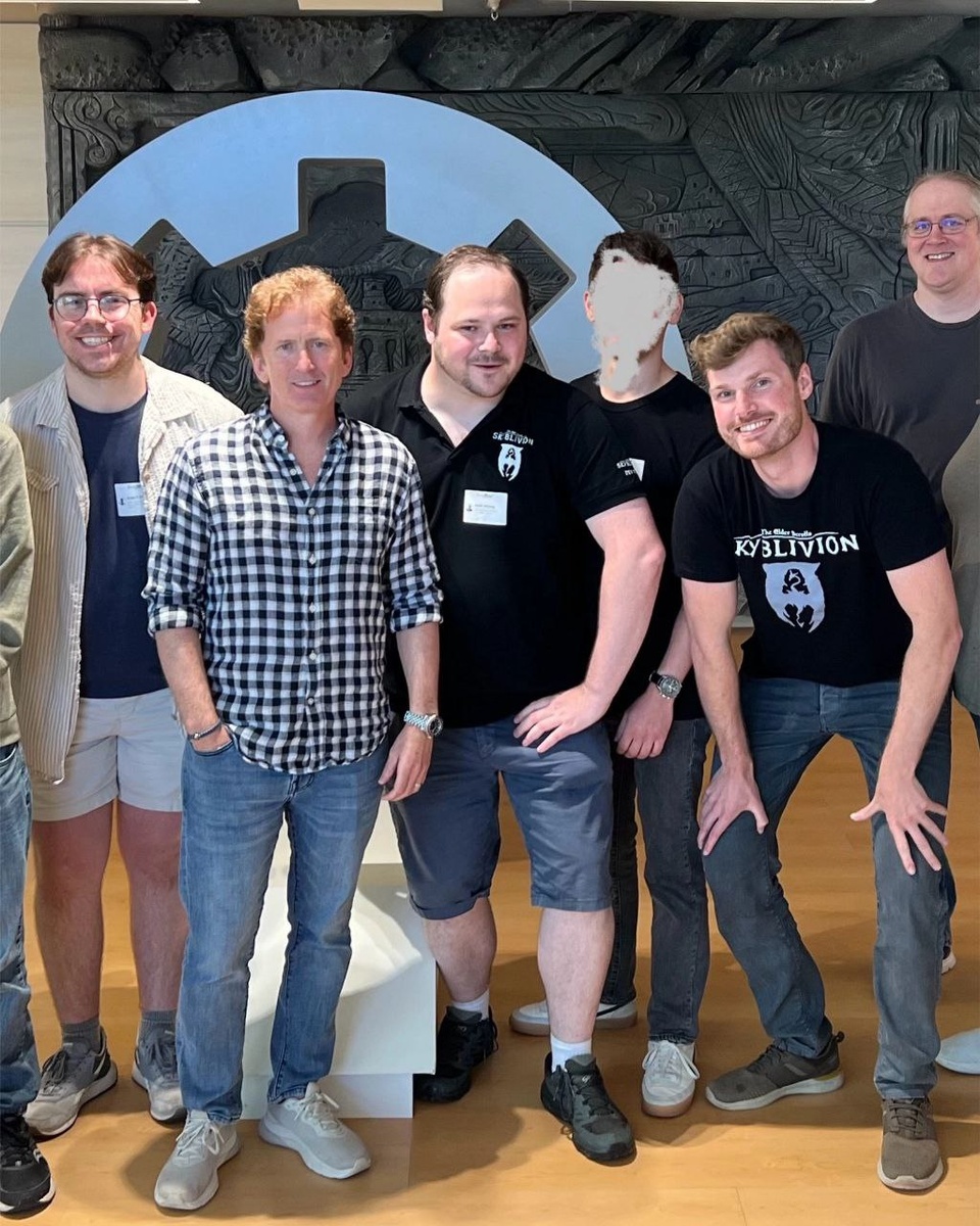 Одни гордятся, другие готовы судиться только вспомни их(привет нинтенда): Тодд Говард позвал создателей мода Skyblivion в офис Bethesda, чтобы пофоткаться и провести экскурсию. В чём провинился человек, лицо которого замазали, история умалчивает. #DreidUPGames #Skyblivion #Bethesda #TheElderScrollsIVOblivionRemastered