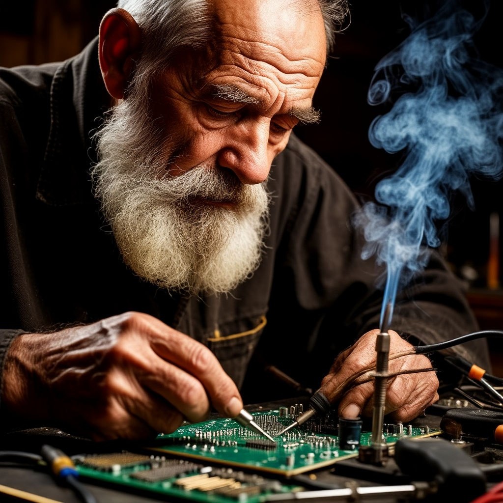 Прогорели тестолиты, Передохли все чипы, Но отважный электронщик Жжёт последние мосты. Он паяльник нагревает Флюс дымится и припой, Если плату не починит - То в глухой уйдёт запой.