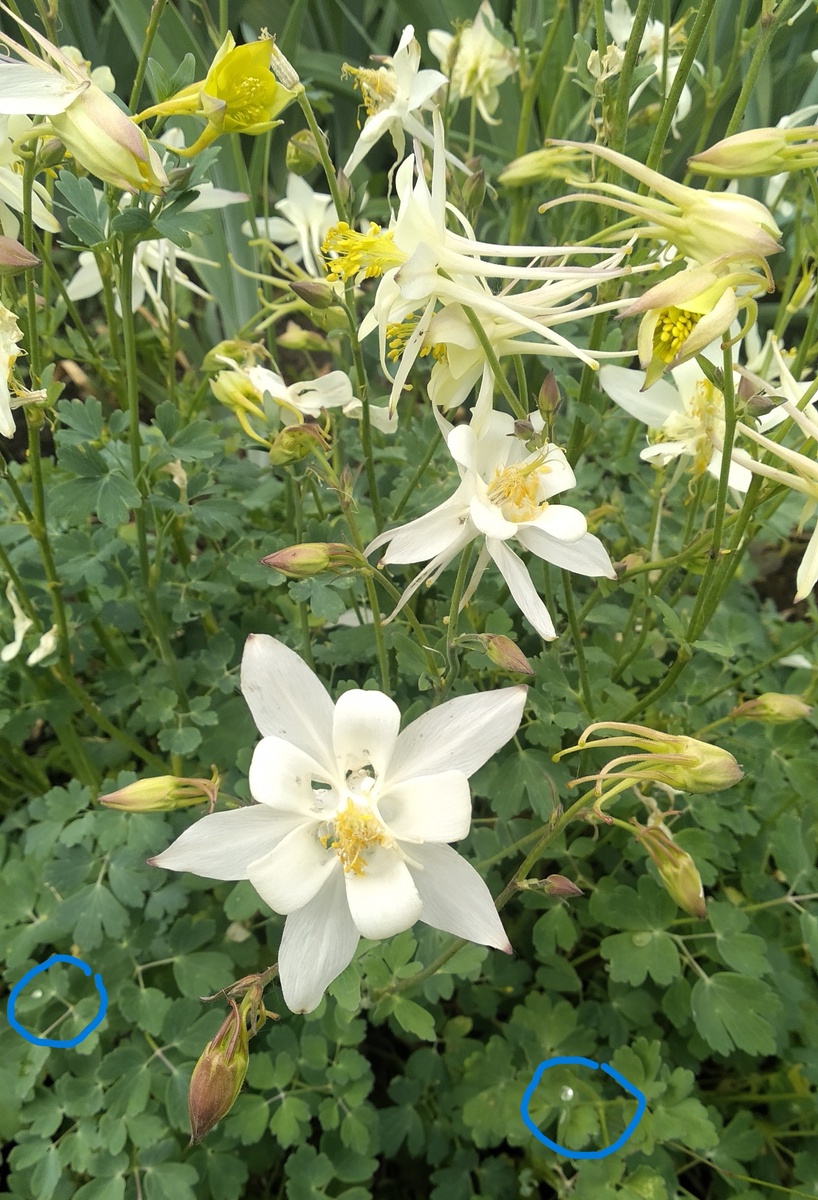 Аквилегия или водосбор - прекрасный цветок. Название водосбор - это дословный перевод с латинского aqua — «вода» и legere — «собирать». Скорее всего название дано цветку из-за крайне низкой смачиваемости листьев ("эффект лотоса") , на них после дождя образуются капли дождя как будто жемчужинки рассыпали :