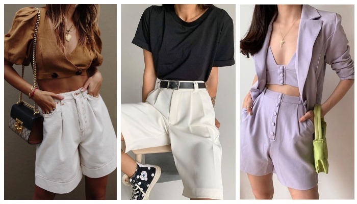 С приходом первых весенних деньков, когда солнце начинает пригревать по-особенному, возникает желание облачиться в лёгкую одежду. В этот момент хочется достать из гардероба любимые шорты и наслаждаться комфортом и свежестью. Мы решили не откладывать и немедленно поделиться с вами яркими идеями для весенне-летних ансамблей, в которых будут прекрасно смотреться актуальные в этом сезоне модели шорт. Впереди вас ждёт множество интересных решений, которые помогут вдохновиться и создать новые запоминающиеся образы. Не переключайтесь! Если говорить про актуальные тренды, то в их число входят оверсайз шорты-бермуды универсальных оттенков с высокой посадкой. Перед вами сдержанный черно-белый look, который включает в себя черную оверсайз футболку, белые шорты классического фасона, черный кожаный ремень, а также модные черно-белые высокие кеды. Белоснежные льняные шорты свободного фасона отлично смотрятся в одной комбинации с рубашками, как с длинным, так и коротким рукавом. Этот варианты наряда
