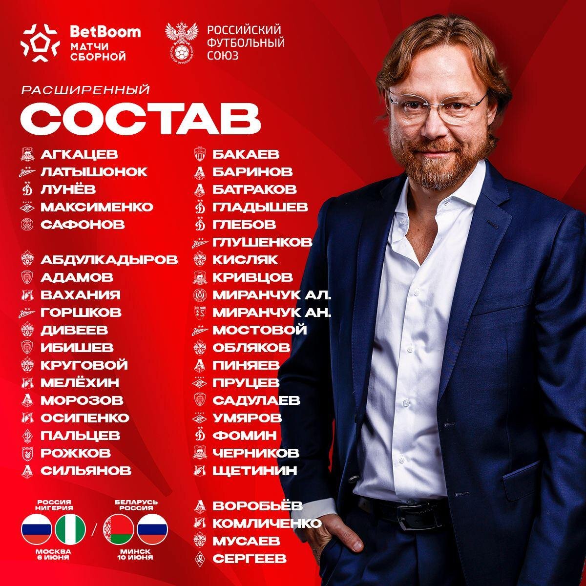 Всего в списке тренерского штаба на июньские сборы 41 футболист. Подопечные Валерия Карпина проведут два товарищеских матча: с Нигерией (6 июня) и Белоруссией (10 июня). Первая встреча пройдёт в Москве, а вторая — в Минске.