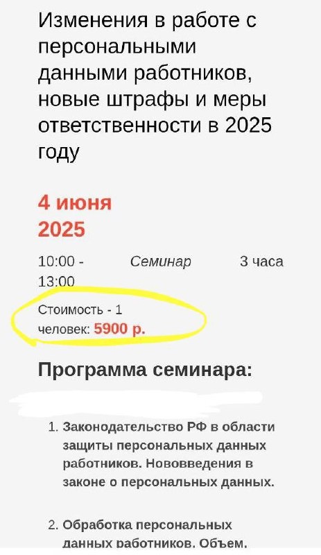 Ну что хочу сказать… 3 часа вебинара про подачу сведений в РКН по цене целого Портфеля предпринимателя. Представьте какова ценность информации, если она столько стоит! Хотите бесплатно выдам контент про РКН? До 30 мая 2025 года всем, кто работают с физическими лицами, собирает данные этих лиц и/или продает физлицам товары/услуги/мероприятия/обучения, обязаны встать в реестр Роскомнадзора. Это бесплатно, как регистрация на госуслугах. Но за отсутствие в этом реестре предусмотрены штрафы: • Штраф за неуведомление Роскомнадзора о намерении осуществлять обработку персональных данных: ◦ от 5 000 до 10 000 рублей — для физлиц; 1 ◦ от 30 000 до 50 000 рублей — для должностных лиц организаций; 1 ◦ от 100 000 до 300 000 рублей — для ИП; 1 ◦ от 100 000 до 300 000 рублей — для организаций. 1 • Штрафы за утечку персональных данных: ◦ в случае незаконной передачи информации о людях в количестве от 1 тыс. до 10 тыс. человек: должностным лицам государственного или муниципального органа либо нек