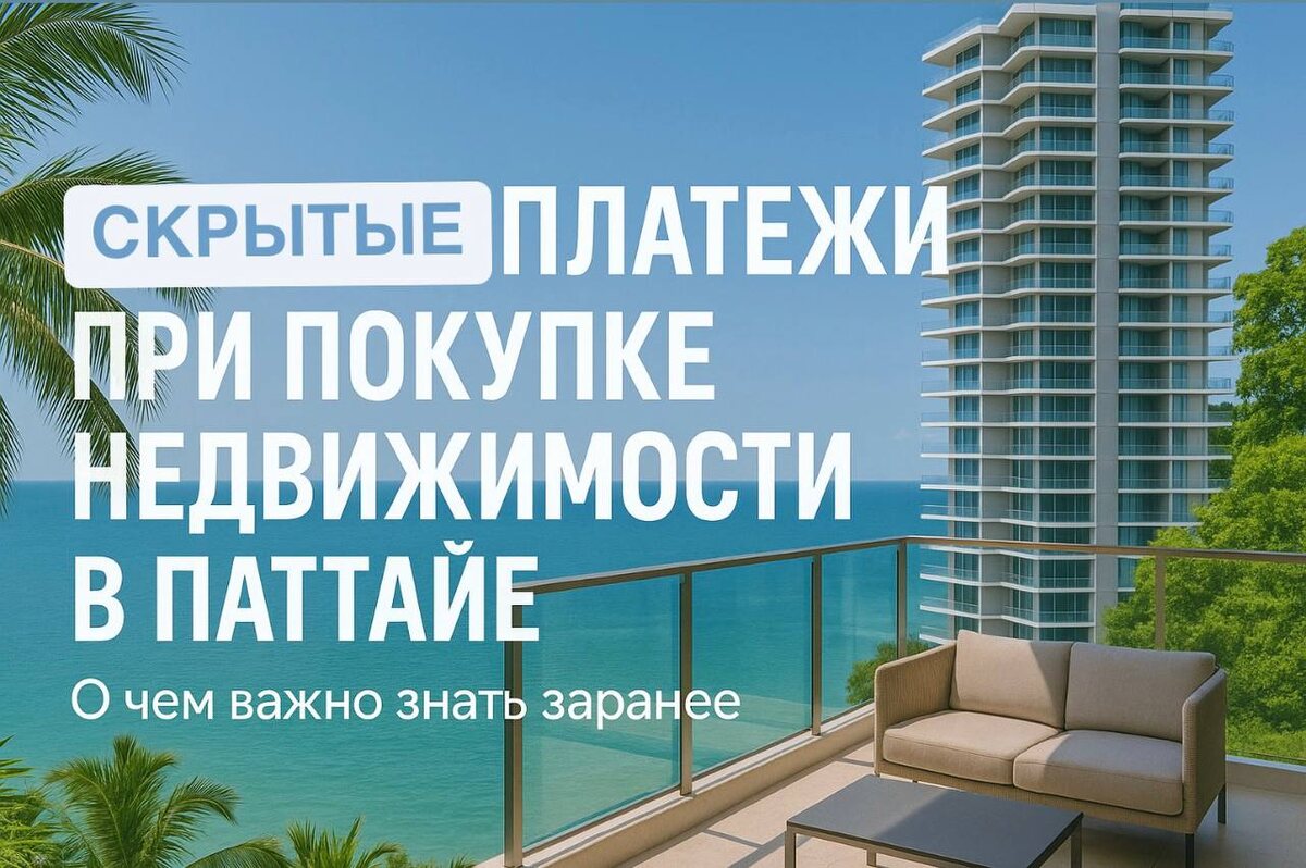 Сколько на самом деле стоит квартира в Паттайе? Спойлер: не только то, что написано в объявлении. Ты выбрала квартиру, прикинула доход от аренды, уже мысленно лежишь с кокосом на балконе. Но потом узнаёшь, что нужно доплатить ещё… и ещё… и ещё. Чтобы такого не случалось, вот список дополнительных платежей, которые стоит учитывать заранее: 1. Сбор за регистрацию собственности — от 1 до 6% от стоимости объекта. Обычно делится между покупателем и продавцом. Но не всегда — всё обсуждается перед сделкой. 2. Коммунальные депозиты — единоразовый взнос в управляющую компанию. Деньги за воду, свет, карточки, счётчики и т.д. Примерно 10–30 тыс. бат. 3. Common Fee — плата за обслуживание территории: бассейн, лифты, охрана. Обычно 40–80 бат за кв.м в месяц. За 35 кв.м — это уже от 1400 до 2800 бат ежемесячно * 12 месяцев. Оплачивается ежегодно 4. Sinking Fund — амортизационный фонд. Разовый взнос от застройщика — 400–800 бат за кв.м. Идёт на будущие ремонты. 5. Банковские комиссии при переводе и