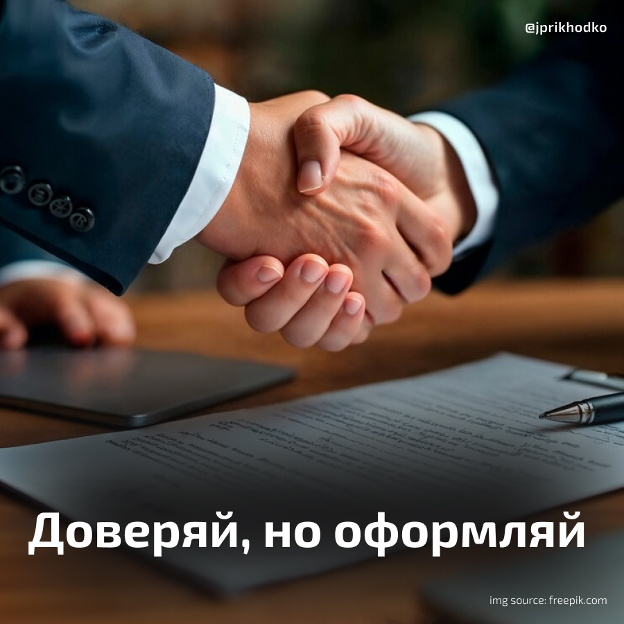 Всегда считала, что любые отношения - особенно деловые - нужно фиксировать на бумаге. Но однажды я всё же попала в ловушку доверия... и получила урок, который запомню на всю жизнь. Я поверила партнёру. Вложила время, работу и идеи. А через полгода всё изменилось: внезапно оказалось, что «его вклад ценнее», а моя экспертиза «недостаточна». Наши равные договорённости испарились - теперь все решения принимаются только так, как хочет он. И самое обидное, я могла избежать этого, если бы с самого начала настояла на документальном оформлении наших отношений. Или вообще отказалась от участия. Эта история подтвердила то, что бизнес - это не только про творчество и вдохновение, но и про чёткие правила. И если их нет, даже близкие люди становятся оппонентами. Многие предприниматели воспринимают договоры как что-то формальное, но на деле это - инструкция по работе в кризисных ситуациях. И случится может все, что угодно. Браки распадаются, партнерства рушатся, бизнесы закрываются. Поэтому оформляйт