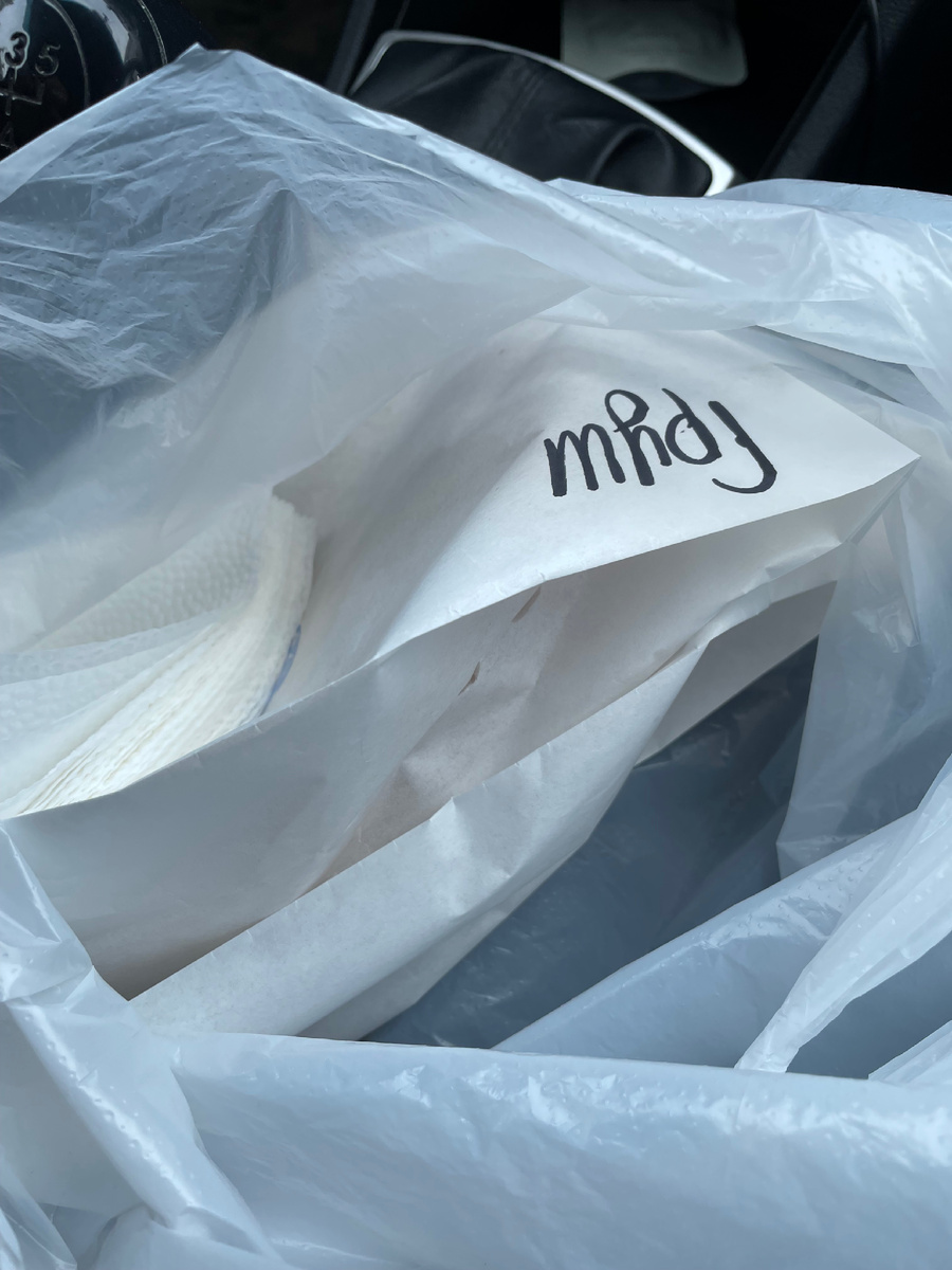 Договорились о времени встречи и я пошла собираться. Помня о том, что при поездке в Комарово она хотела заехать поесть там чебуреки, я заглянула в чебуречную у меня около дома. У нас есть маленькое кафе, где готовят отличные чебуреки с разными начинками. Выбрала для нее классический с говядиной-свининой и извращенческий груша-горгонзола 😂😂😂