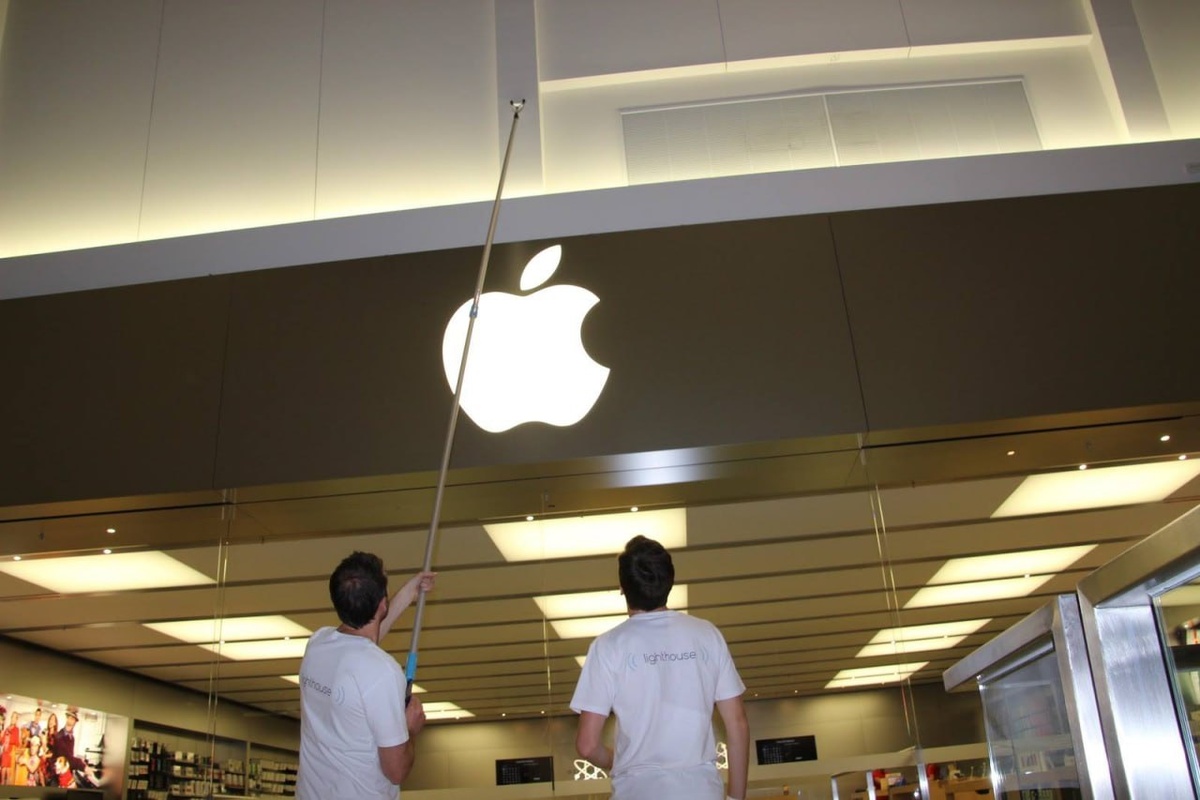 Вот так ставят маячки iBeacon в торговых центрах. Они клеятся на двусторонний скотч, работают до 3-4 лет от батарейки. Обычно клеят при входе, чтобы проходящие мимо получали push на телефон... А клеить можно с помощью палки для чистки бассейна, как на картинке...