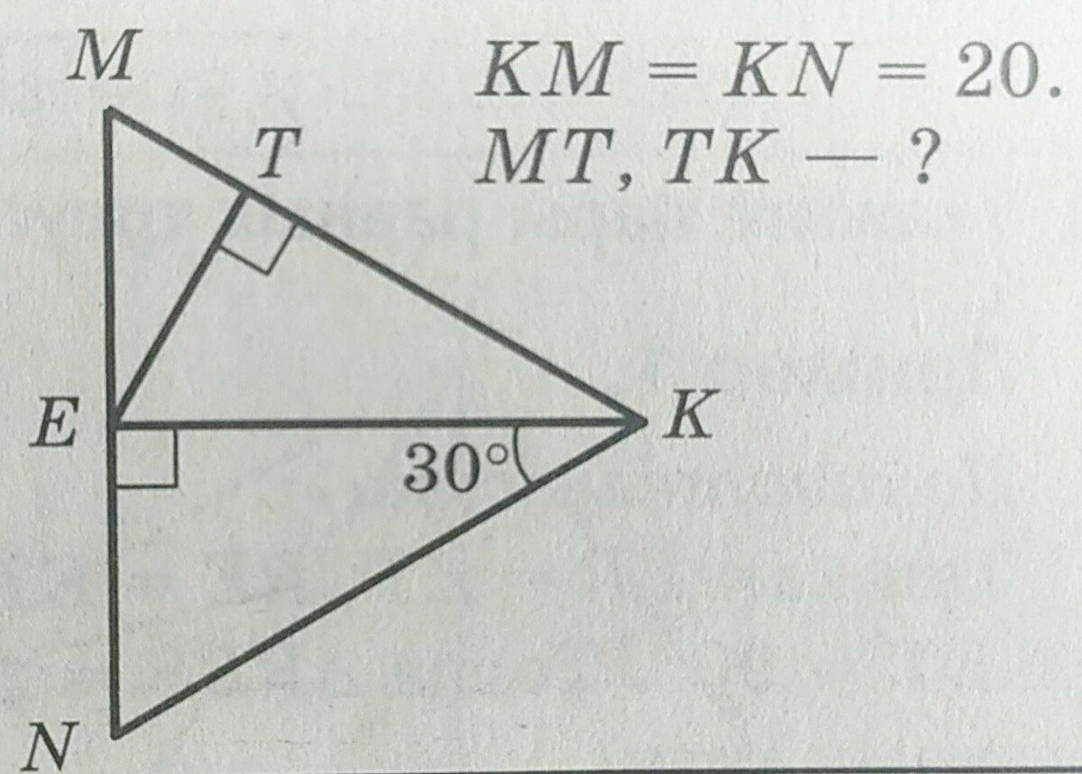 Геометрия Дано КМ=KN =20 Найти МТ, ТК-? Ответ: МТ =5, ТК =15. #геометрия #углы #треугольник