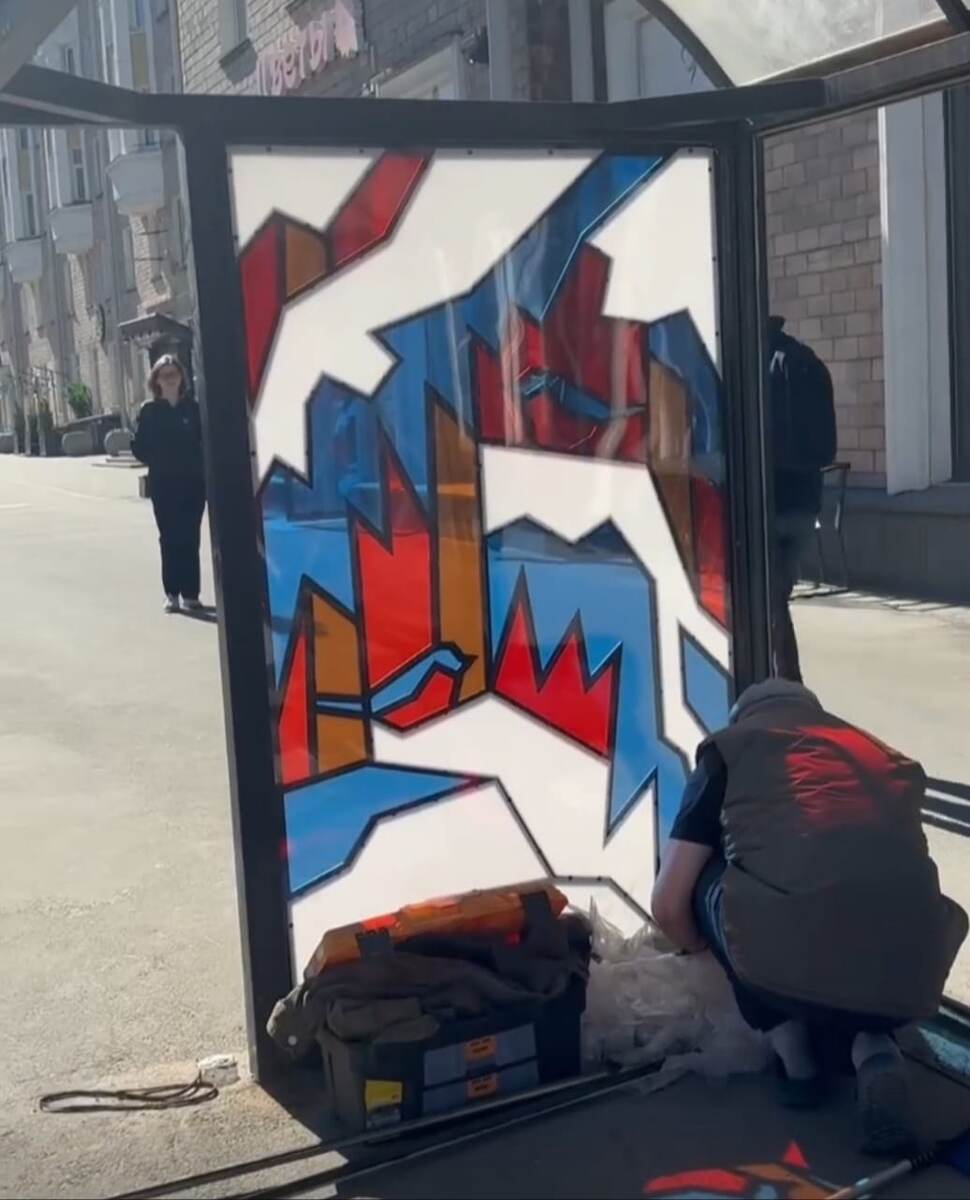 Прямо сейчас монтируем третий витраж на автобусной остановке по эскизам воспитанников и преподавателей нашей Детской художественной школы — на проспекте Ленина. В прошлом году директор школы Илья Кемпи поддержал мою инициативу привлечь ребят к оформлению общественных пространств города, — сообщила мэр города в своем личном профиле.
