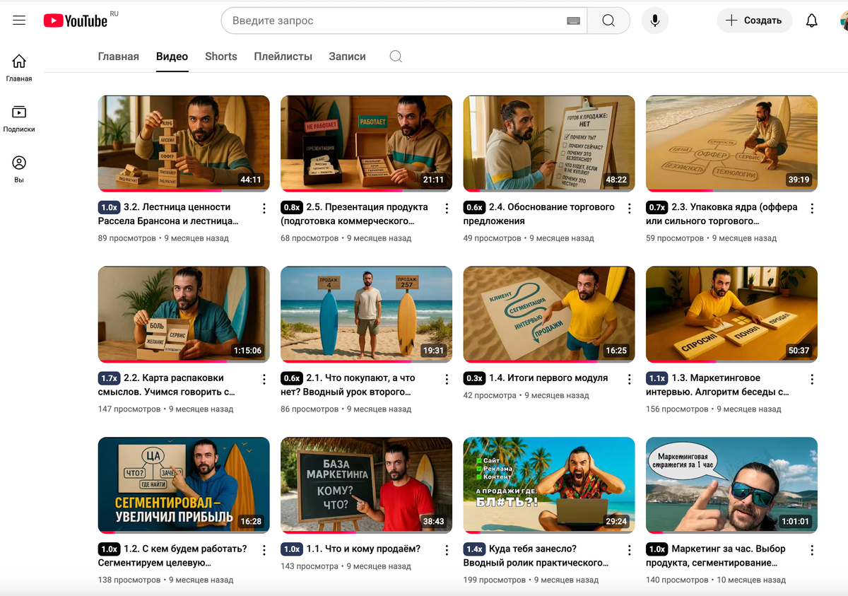Самостоятельно всё сделай, не нужен тебе маркетолог, особенно, если бизнес пока небольшой, и лишних денег нету. Давно надо было так сделать, но сделал только сегодня. Вот сам канал, где я всё выложил с подробнейшими инструкциями и демонстрациями на реальных бизнесах: t.me/algrigowave Зацени, как оформил канал YouTube. Всё в едином стиле теперь. Прикол в том, что это всё без дизайнера, вот так можно прям своими руками делать обложки. Не так, чтобы шедеврально, но я думаю, это вопрос практики. Но самое главное, что это невероятно быстро и практически бесплатно! А идеи воплощаются точно, как я их задумал! Поковыряться придётся, но это точно проще, чем объяснить дизайнеру, что мне нужно, я на опыте говорю. А ещё сделал перелинковку на тг канал, где предлагаю дополнительную ценность — даю конспекты и все шаблоны ментальных карт, которые использую в каждом видео. Т.е. можно как с канала на ютюб зайти и скачать нужную карту или конспект, так и через тг канал можно найти нужное видео, чтобы п