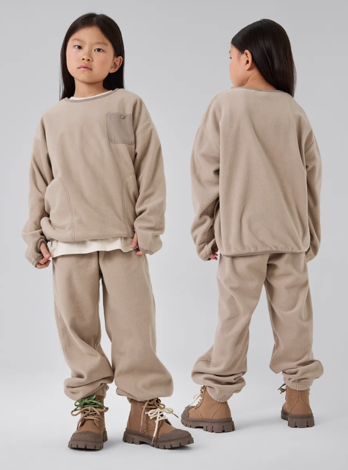 Уютный и тёплый комплект из мягкого флиса идеально подойдёт для прогулок в прохладное время года. Верх с круглыми вырезом и накладным карманом, свободный крой обеспечивает комфорт движений. Брюки на резинке с манжетами дополняют образ. Износостойкий флис хорошо сохраняет тепло и приятен к телу.